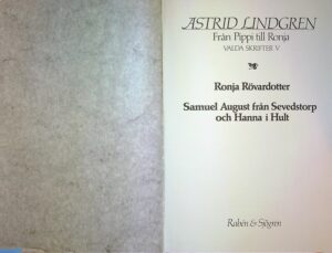 Denna exklusiva Jubileums/Bibliofilupplaga publicerades 1982 i samband med Astrid Lindgrens 75-årsdag. Samlingen omfattar över 1 800 sidor och sträcker sig från Pippi Långstrump via Bullerbyn och Madicken, till Mio, Emil och slutligen Ronja Rövardotter. Ett komplett panorama över Astrid Lindgrens litterära universum.